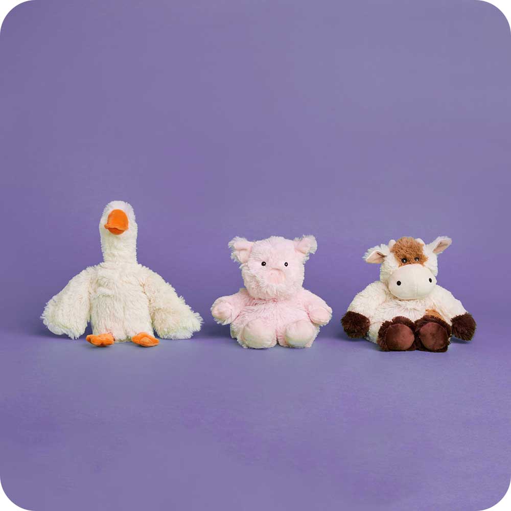 Choose 3+ Warmies animals and build a barnyard filled with snuggly friends. These microwavable and weighted companions offer hours of soothing warmth and comfort, whether you’re cuddling or creating an imaginary farmyard.